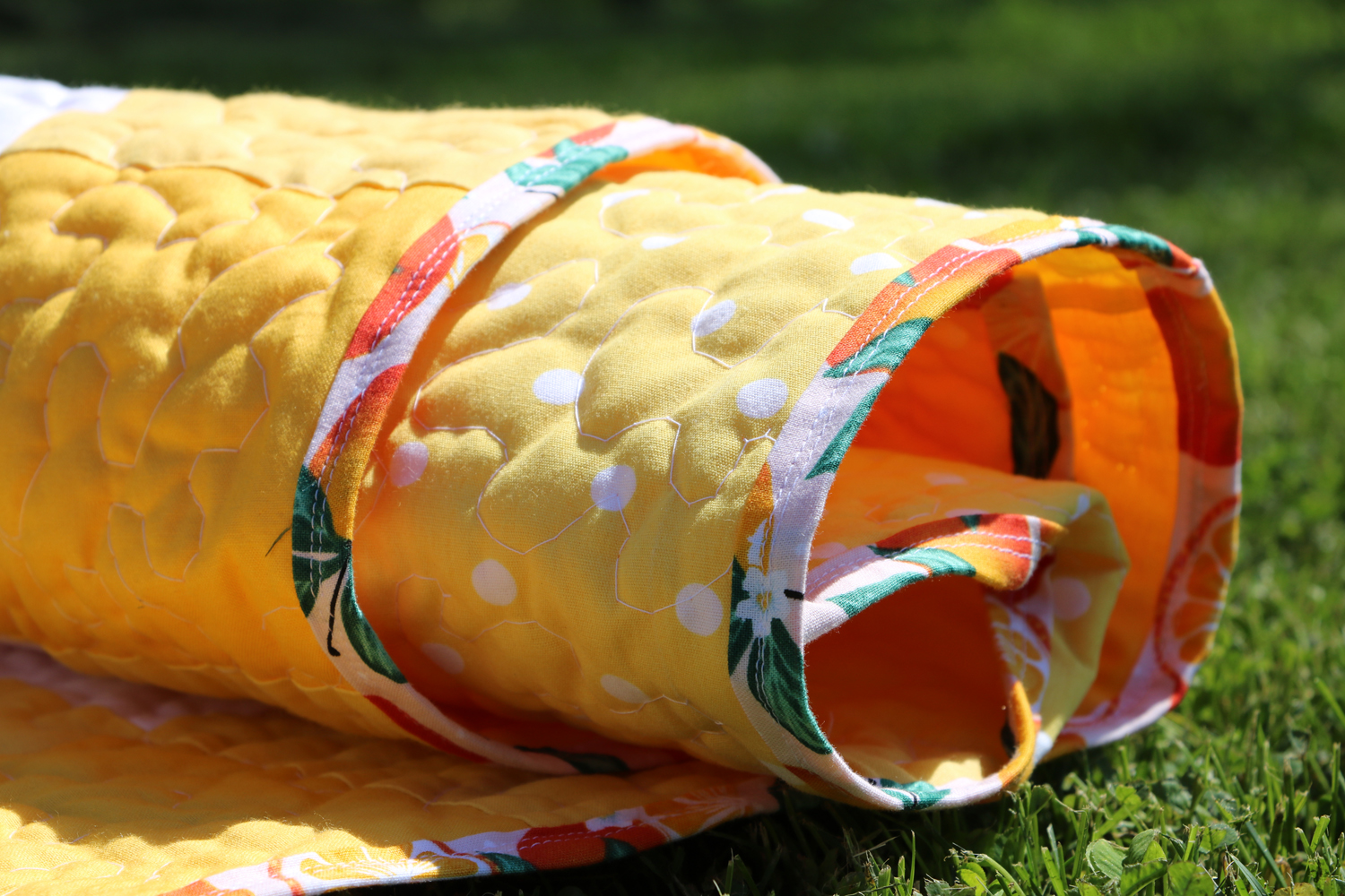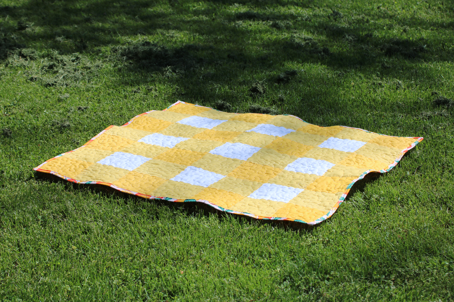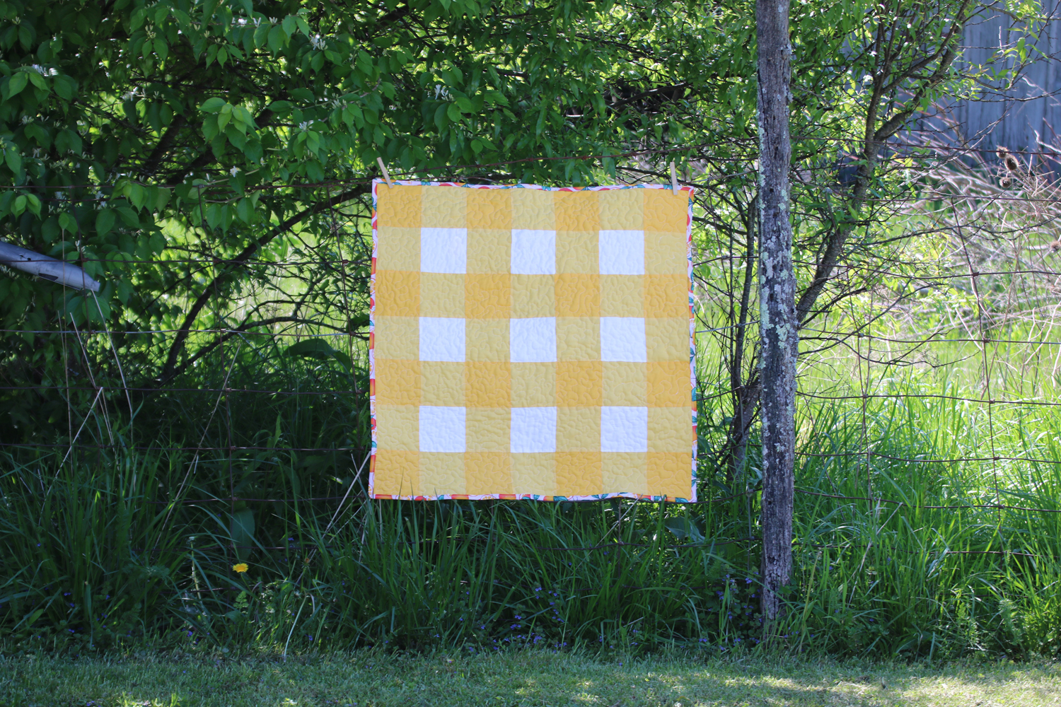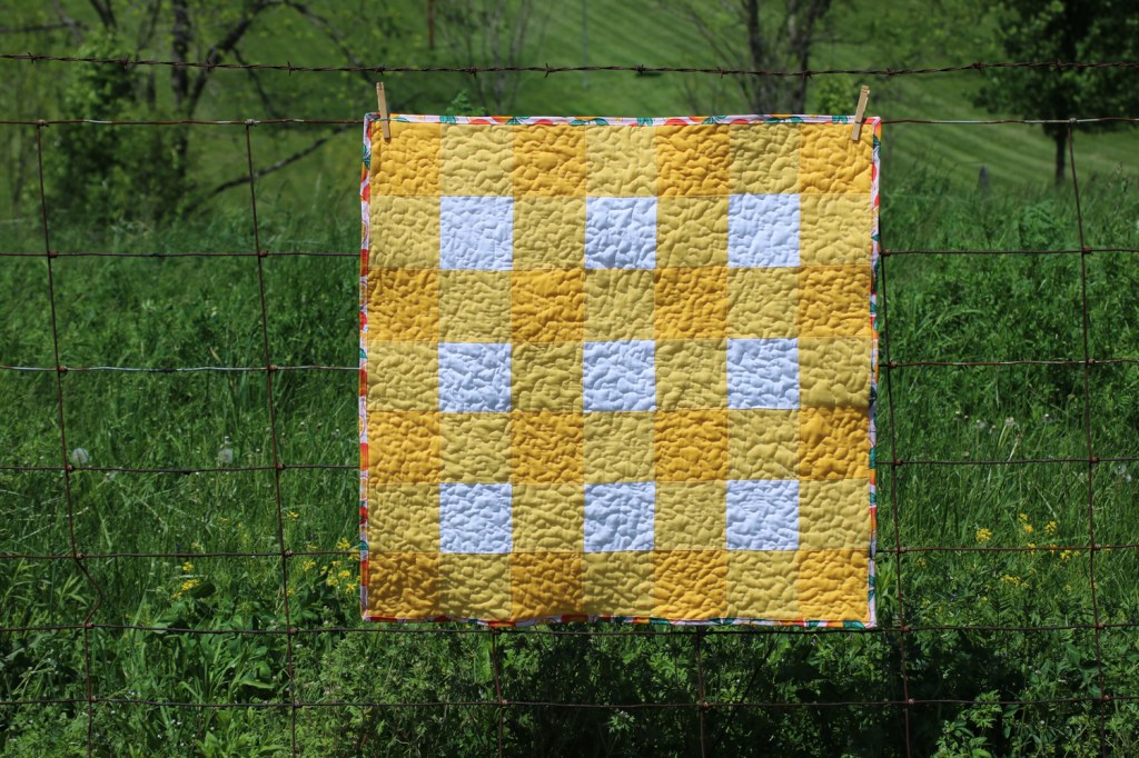 Quilt 4 (Yellow Gingham) Polkadots, Gingham and Oranges collide in an adorable fashion. Measures approximately 31 x 31 Love this quilt? It can be yours–just place a bid below! Bidding ends 5/15/2021 at 5:00 EST