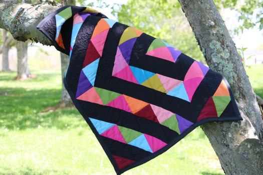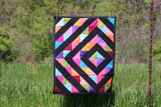 Quilt 6 (Black Diamonds) Bold and Beautiful the solid colors in this quilt pop against the black background! Measures 28 x 35 Interested in purchasing? Comment your bid! Bidding will end 5/15/2021 at 5:00 EST